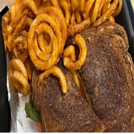Your choice of bread: white, wheat, or marble rye. All sandwiches are served with your choice of house seasoned chips or homemade fries. Substitute for curly fries, sweet potato fries, or dinner salad $3.00 Substitute gluten free bun $2.00